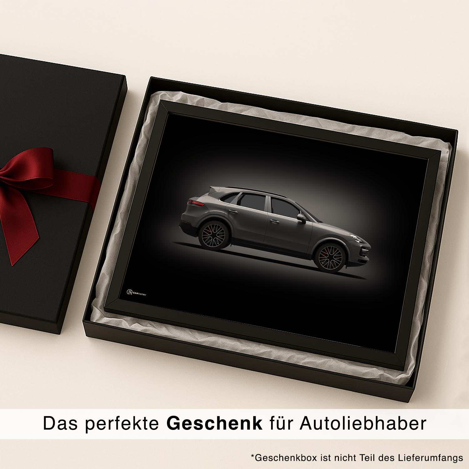 CARTISTRY Premium Poster in verschiedenen Größen (70x50cm und 40x30cm). Hergestellt in Deutschland auf hochwertigem 250g Premium-Papier. Dieses Poster zeigt einen Porsche Cayenne in der Seitenansicht in dunkler Ausführung. Gemacht ...