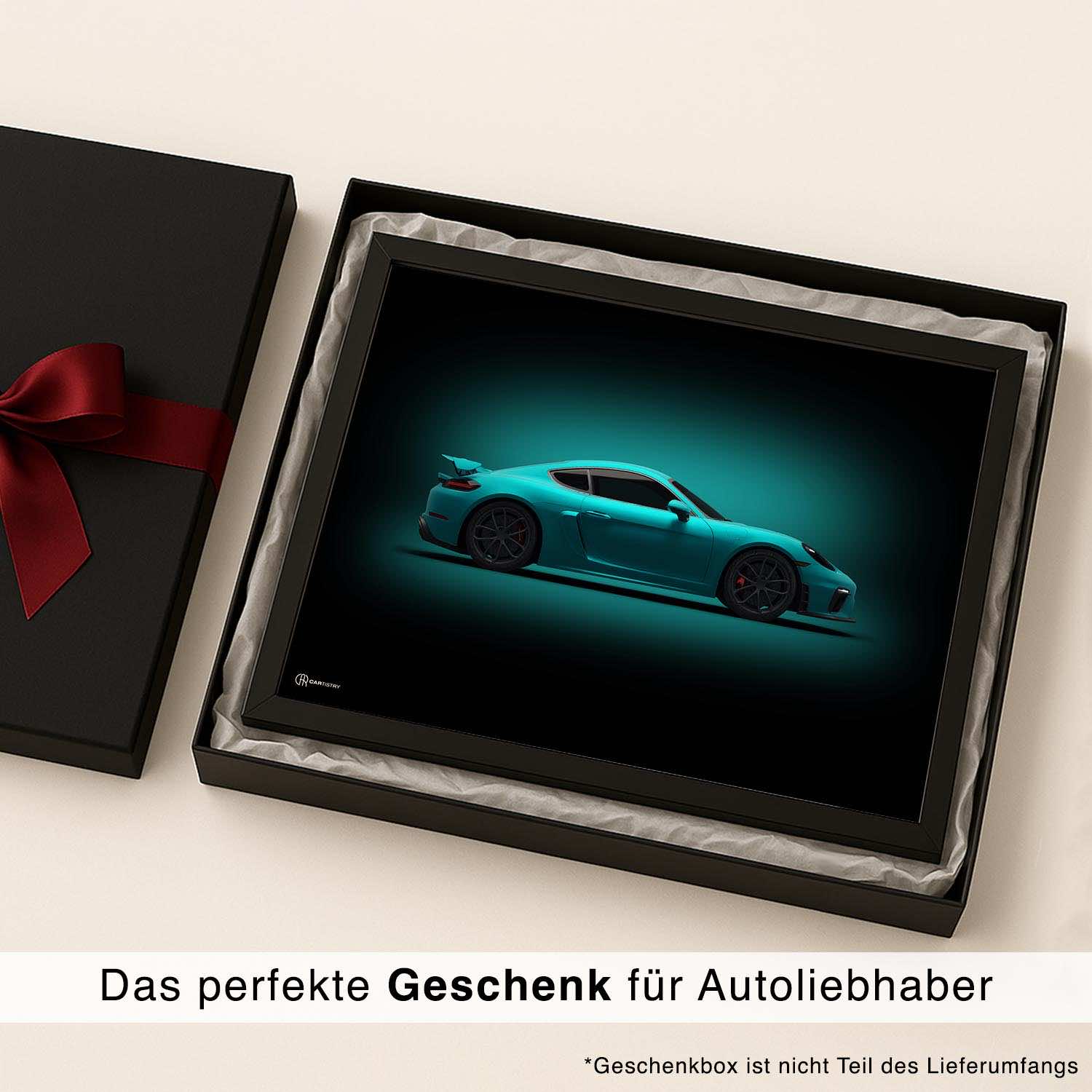 CARTISTRY Premium Poster in verschiedenen Größen (70x50cm und 40x30cm). Hergestellt in Deutschland auf hochwertigem 250g Premium-Papier. Dieses Poster zeigt einen Porsche Cayman GT4 in der Seitenansicht in dunkler Ausführung. Gemacht von Autoliebhabern ...