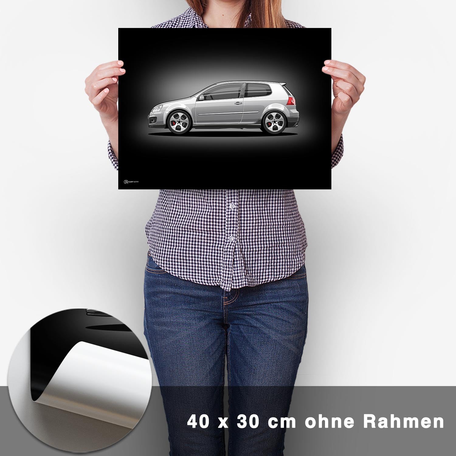 CARTISTRY Premium Poster in verschiedenen Größen (70x50cm und 40x30cm). Hergestellt in Deutschland auf hochwertigem 250g Premium-Papier. Dieses Poster zeigt ein Artwork eines Volkswagen Golf 5 GTI ...