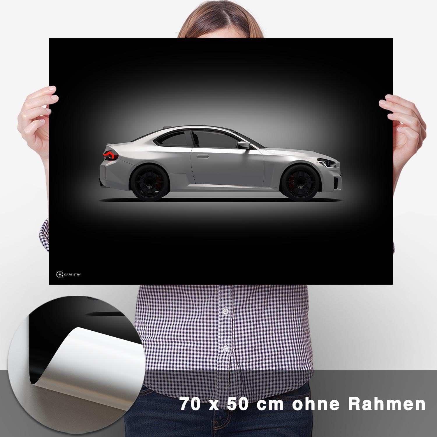 CARTISTRY Premium Poster in verschiedenen Größen (70x50cm und 40x30cm). Hergestellt in Deutschland auf hochwertigem 250g Premium-Papier. Dieses Poster zeigt einen BMW M2 G87 in der ...