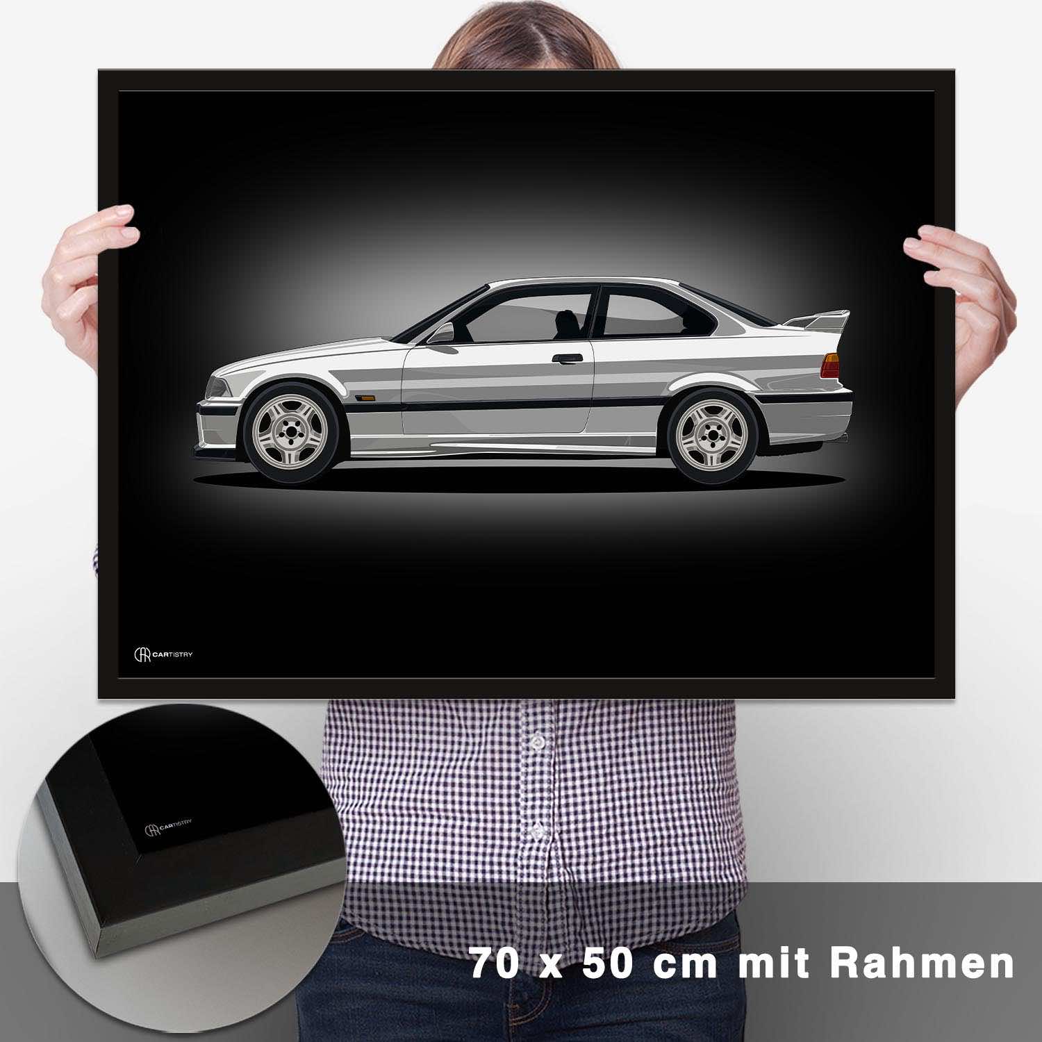 CARTISTRY Premium Poster in verschiedenen Größen (70x50cm und 40x30cm). Hergestellt in Deutschland auf hochwertigem 250g Premium-Papier. Dieses Poster zeigt ein Artwork von einem BMW M3 E36 in der ...