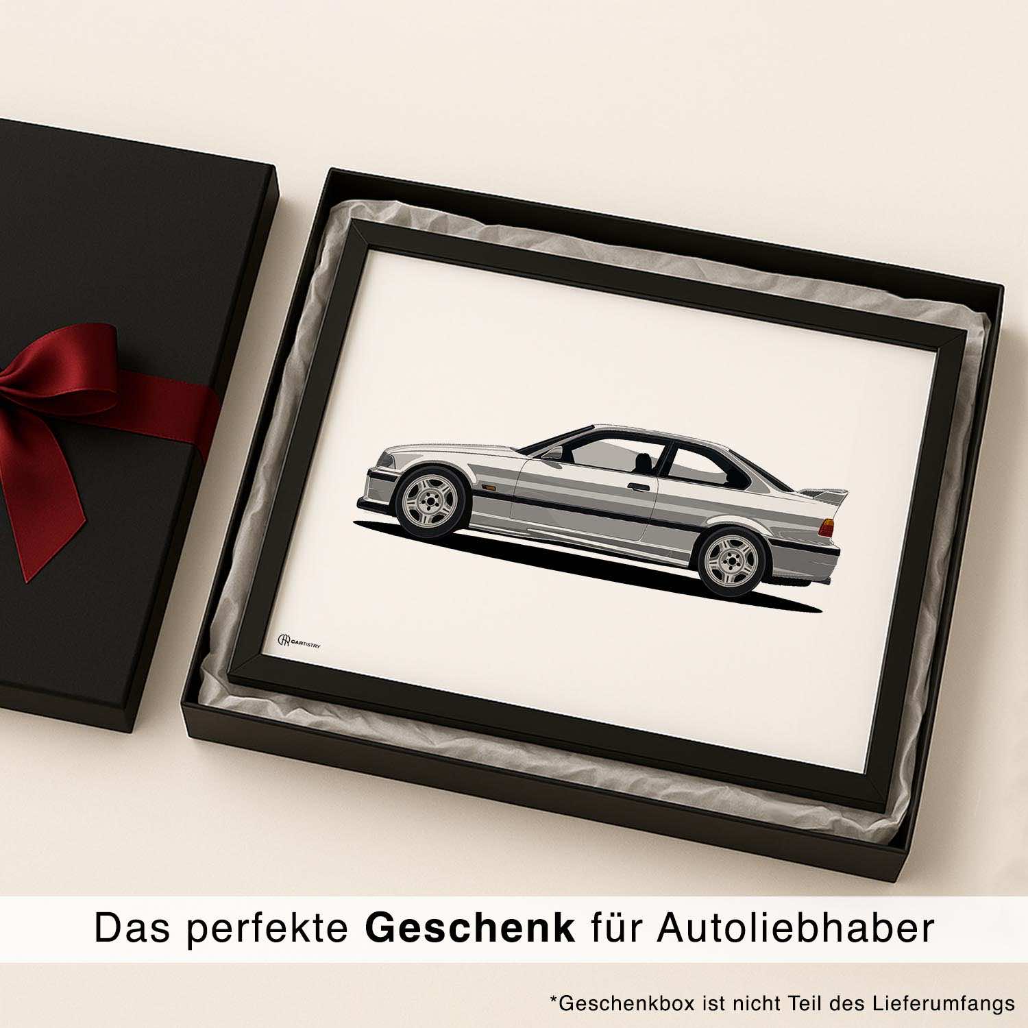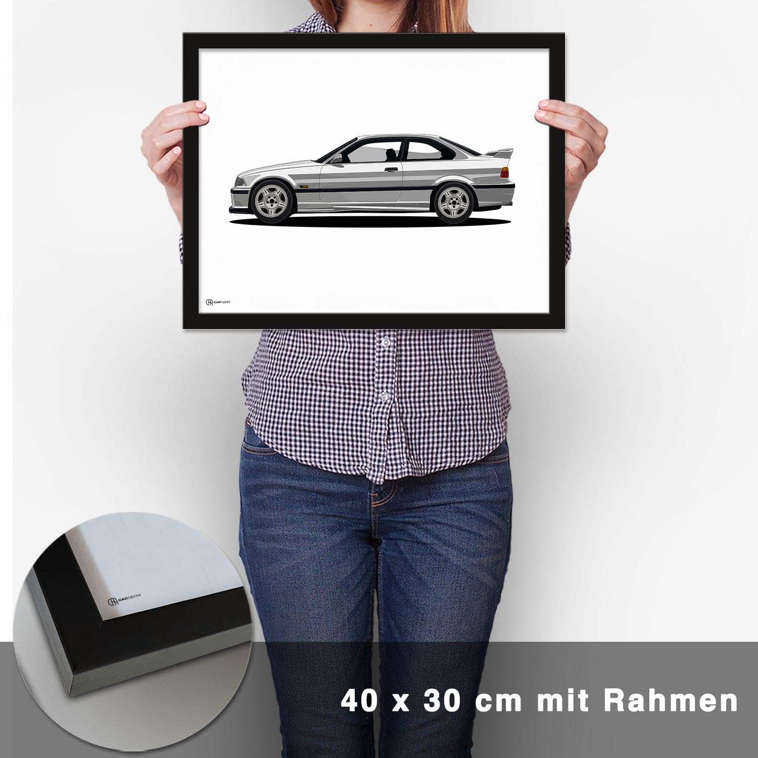 CARTISTRY Premium Poster in verschiedenen Größen (70x50cm und 40x30cm). Hergestellt in Deutschland auf hochwertigem 250g Premium-Papier. Dieses Poster zeigt ein Artwork von einem BMW M3 E36 in der ...