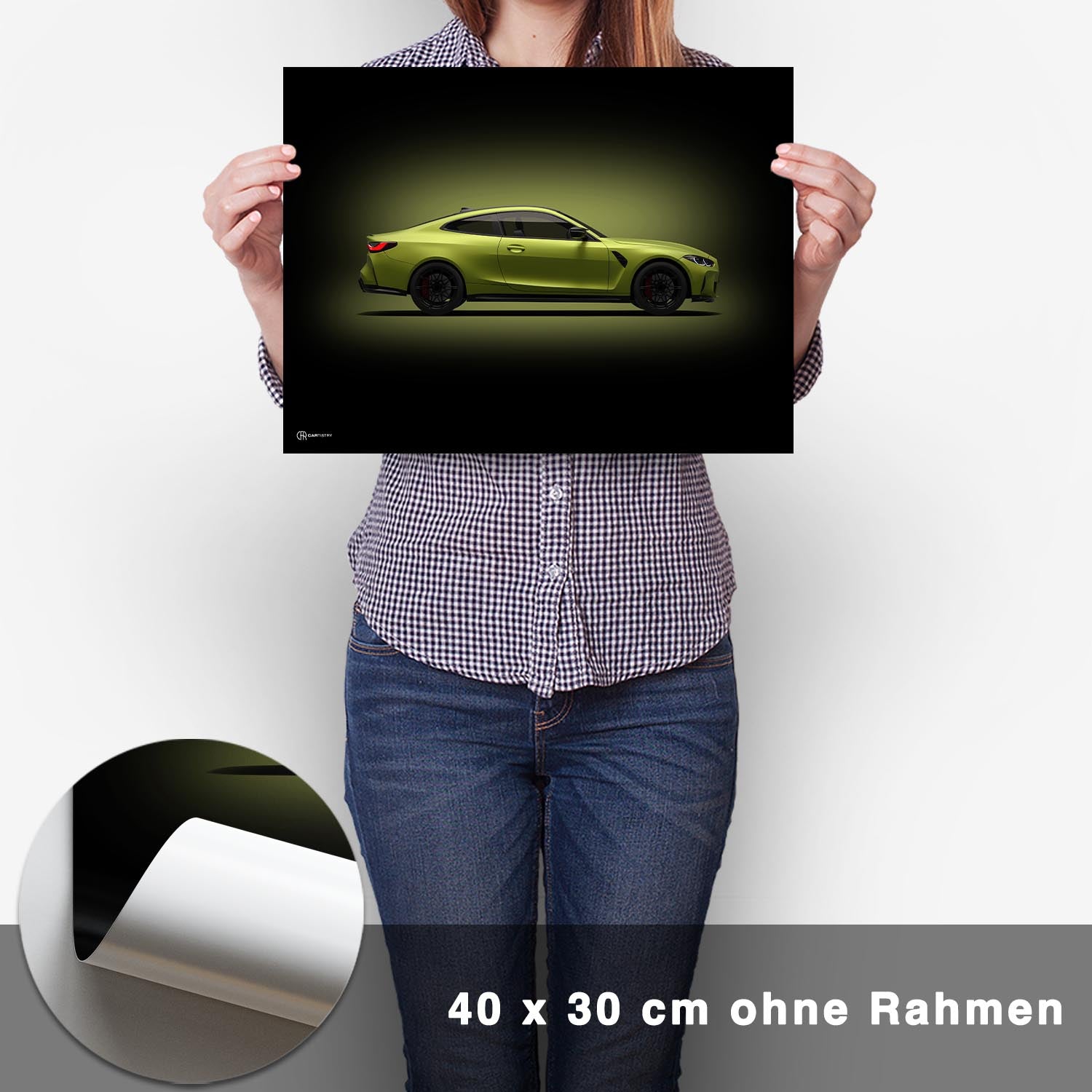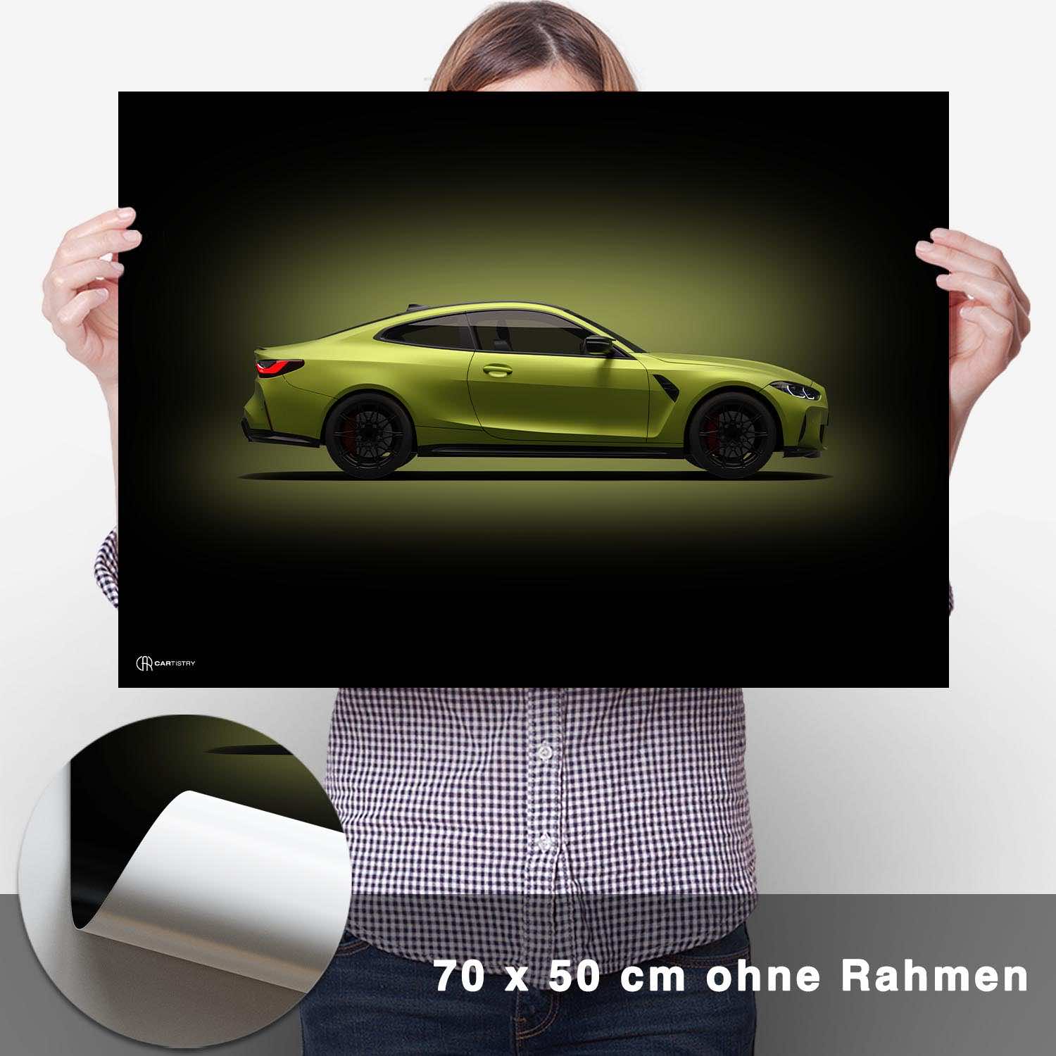 CARTISTRY Premium Poster in verschiedenen Größen (70x50cm und 40x30cm). Hergestellt in Deutschland auf hochwertigem 250g Premium-Papier. Dieses Poster zeigt einen BMW M4 G82 in der ...