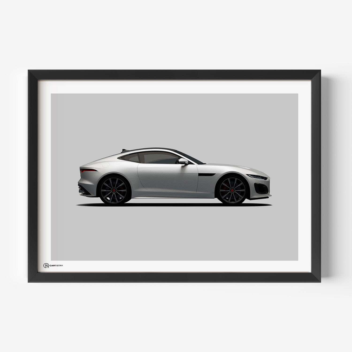 CARTISTRY Premium Poster in verschiedenen Größen (70x50cm und 40x30cm). Hergestellt in Deutschland auf hochwertigem 250g Premium-Papier. Dieses Poster zeigt einen Jaguar F-Type in der Seitenansicht in heller ...