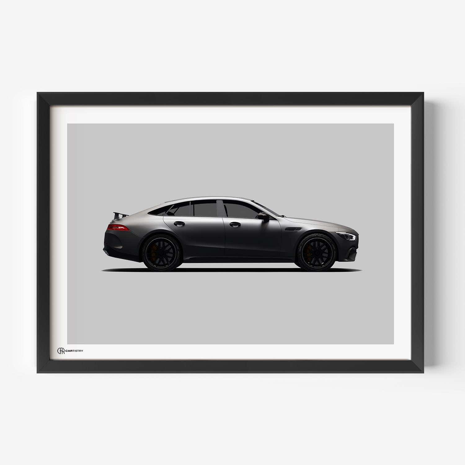 CARTISTRY Premium Poster in verschiedenen Größen (70x50cm und 40x30cm). Hergestellt in Deutschland auf hochwertigem 250g Premium-Papier. Dieses Poster zeigt einen Mercedes-Benz GT63 AMG in der Seitenansicht in ...