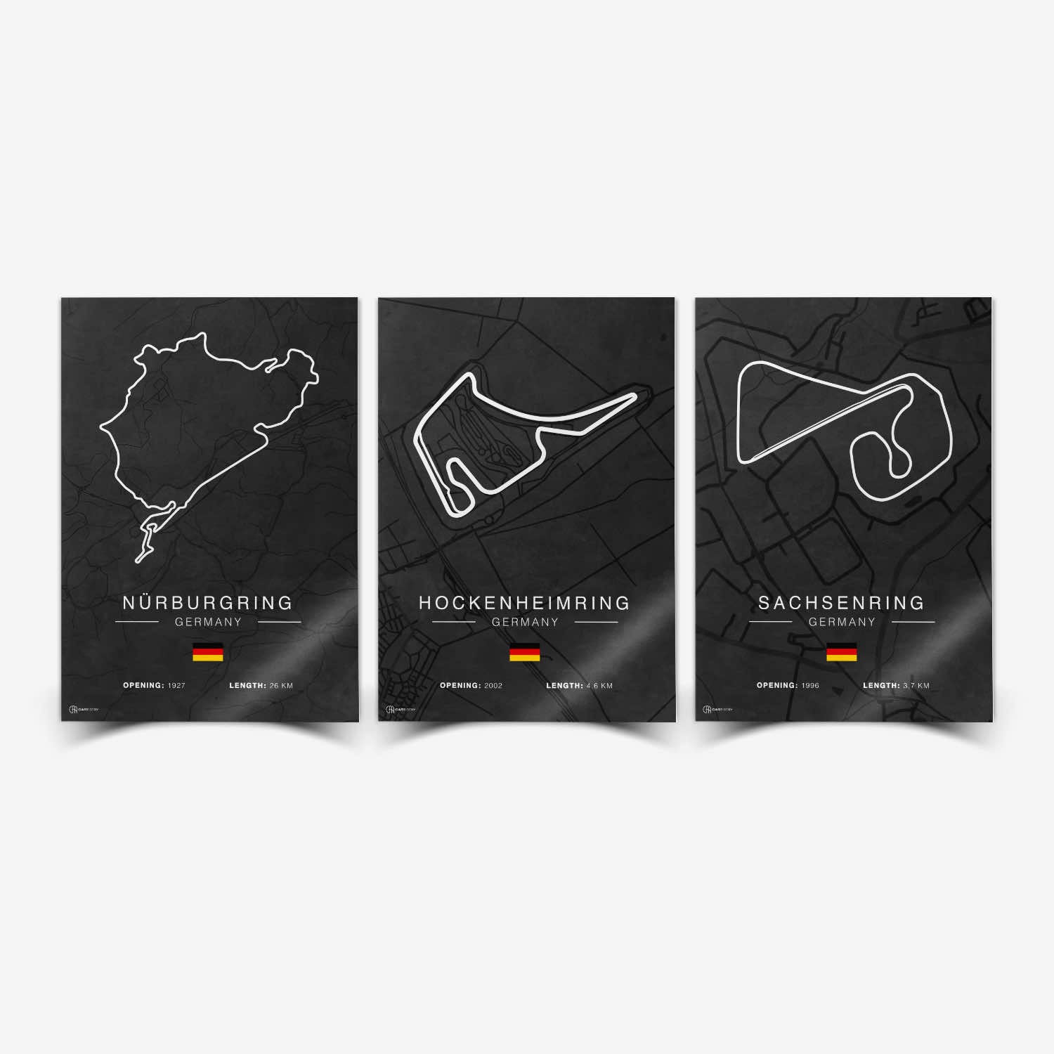 3er Set Rennstrecken Poster Deutschland - Dunkel