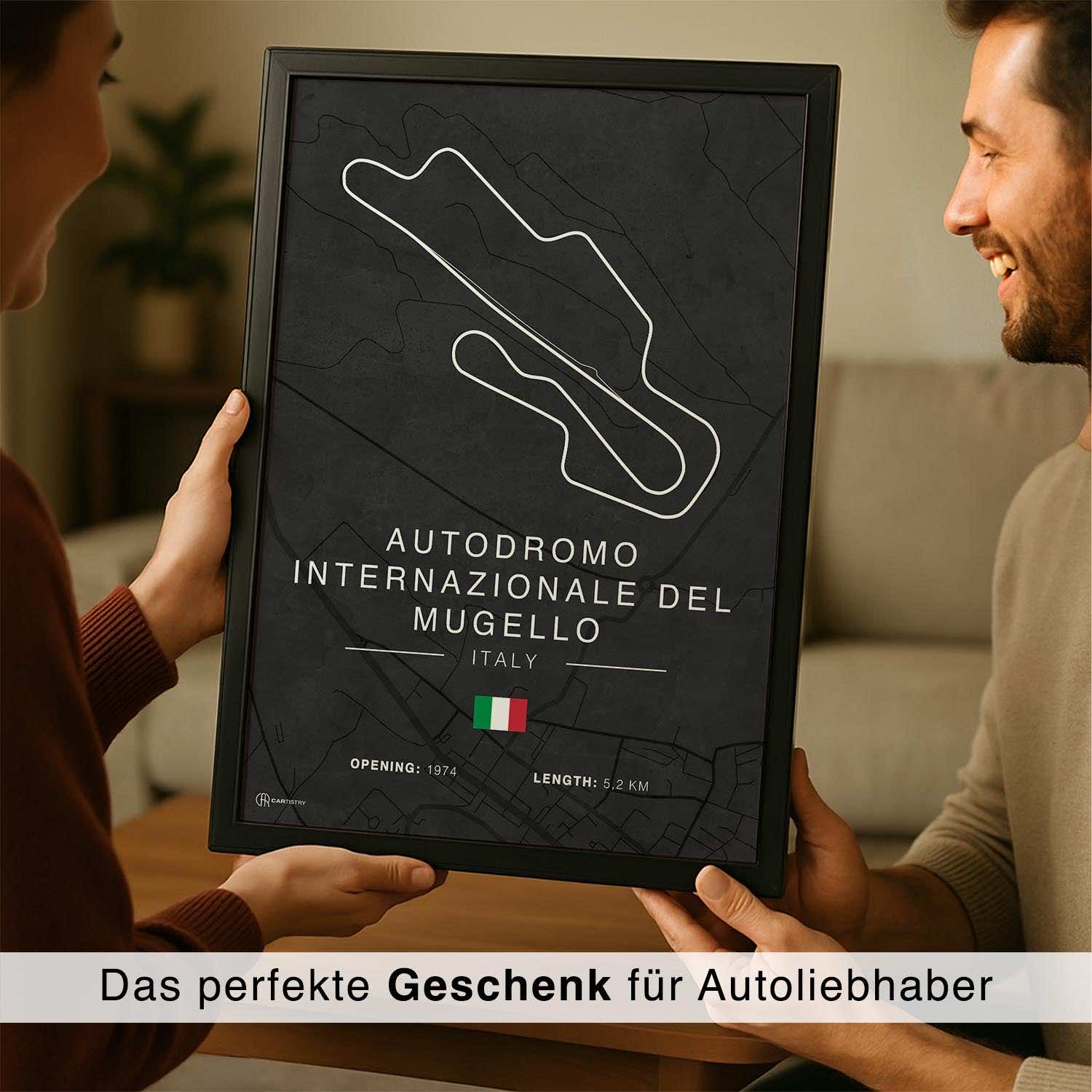 CARTISTRY Premium Poster in verschiedenen Größen (70x50cm und 40x30cm). Hergestellt in Deutschland auf hochwertigem 250g Premium-Papier. Dieses Poster zeigt die Rennstrecke "Autodromo Internazionale del Mugello" ...