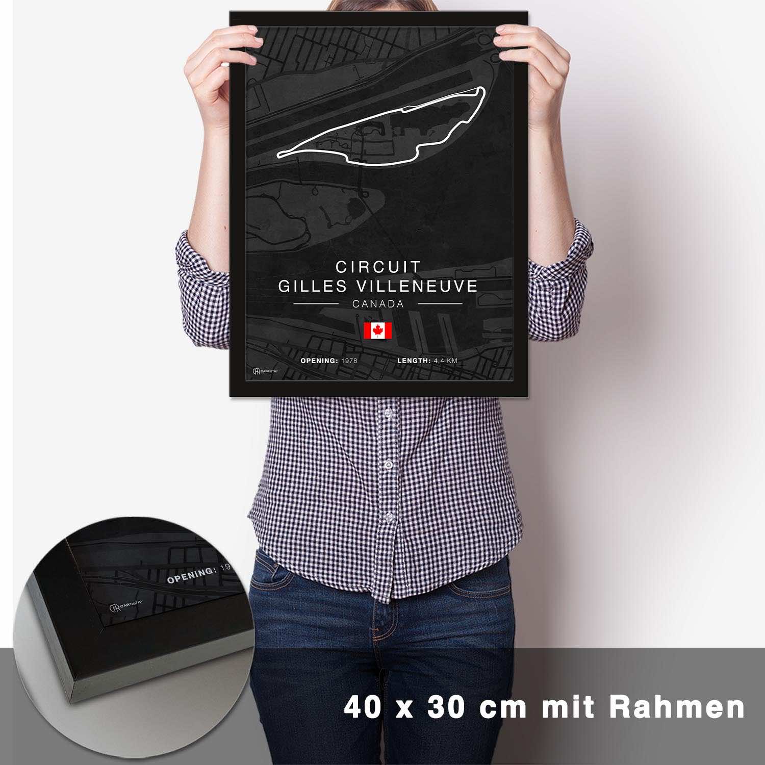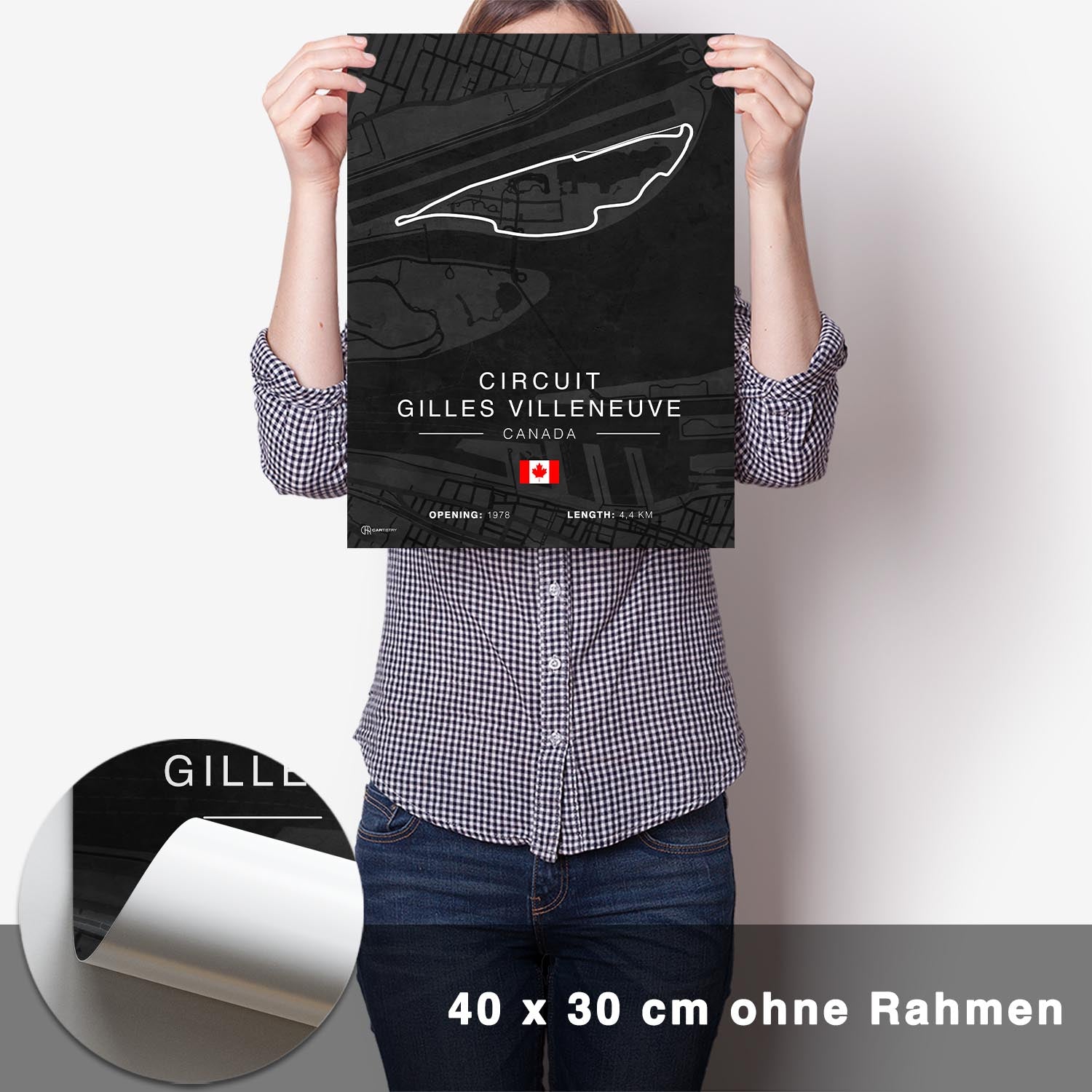 Gilles Villeneuve Rennstrecken Poster - Dunkel