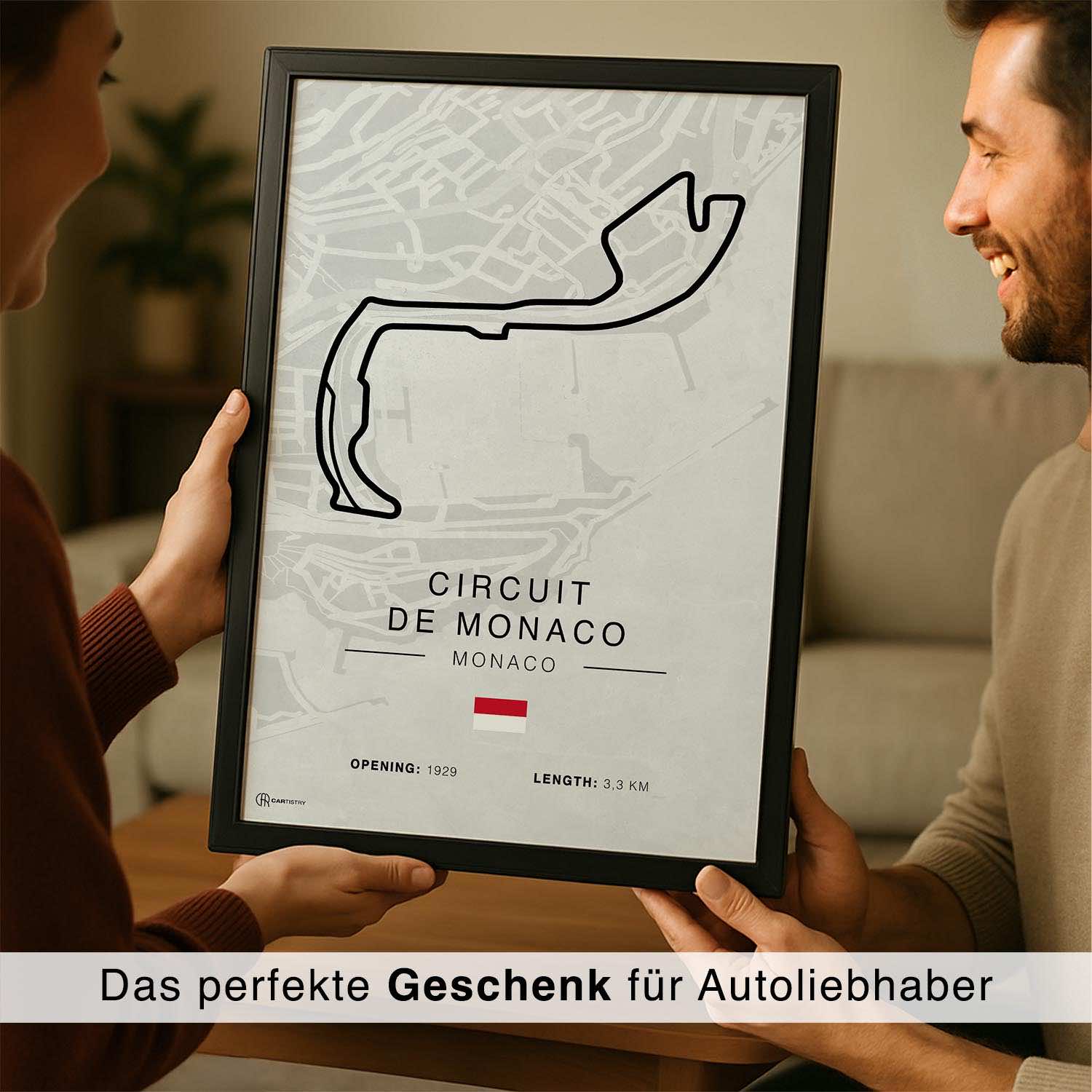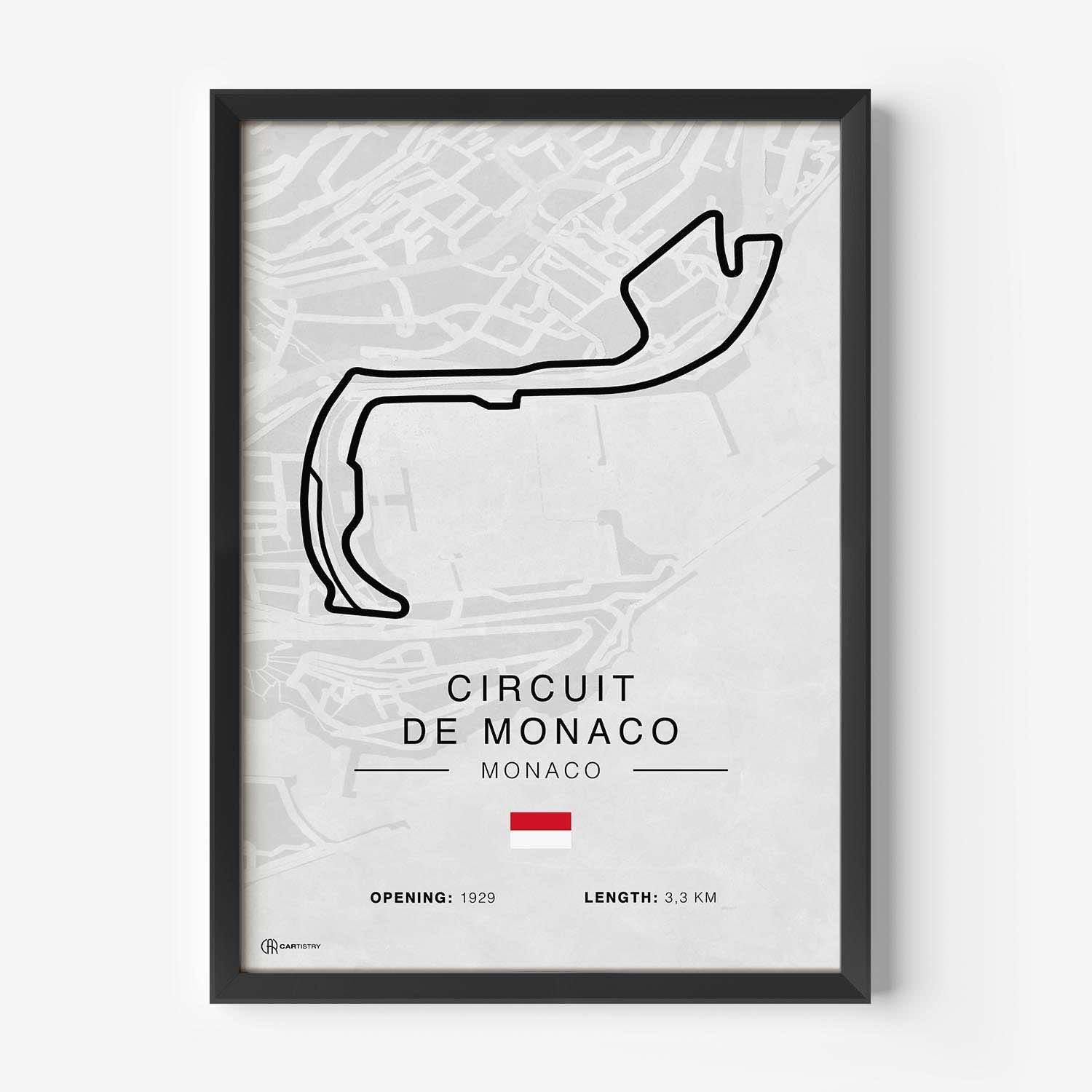CARTISTRY Premium Poster in verschiedenen Größen (70x50cm und 40x30cm). Hergestellt in Deutschland auf hochwertigem 250g Premium-Papier. Dieses Poster zeigt die Rennstrecke "Circuit de Monaco" in ...