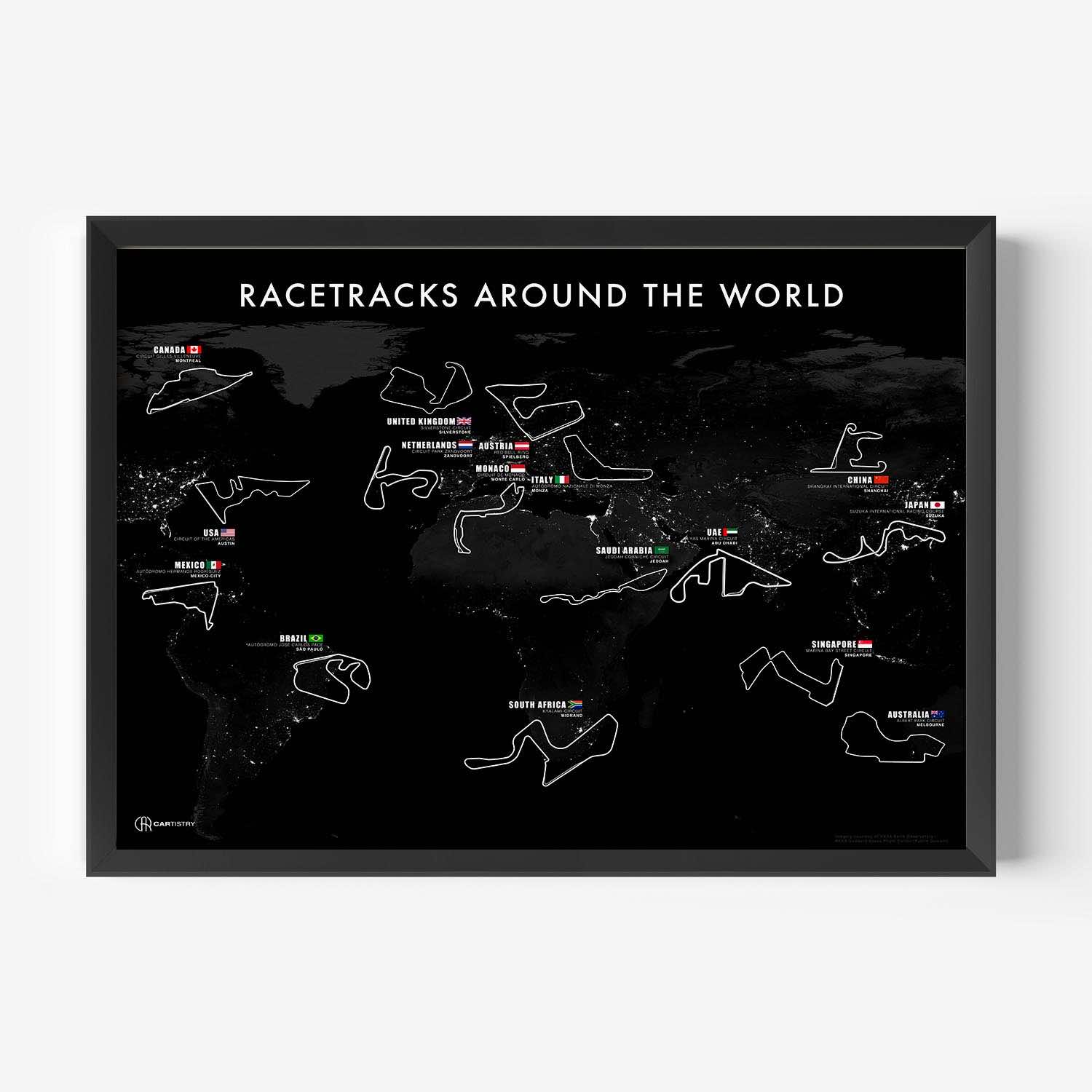Legendäre Rennstrecken Weltkarten Poster - Dunkel - Cartistry