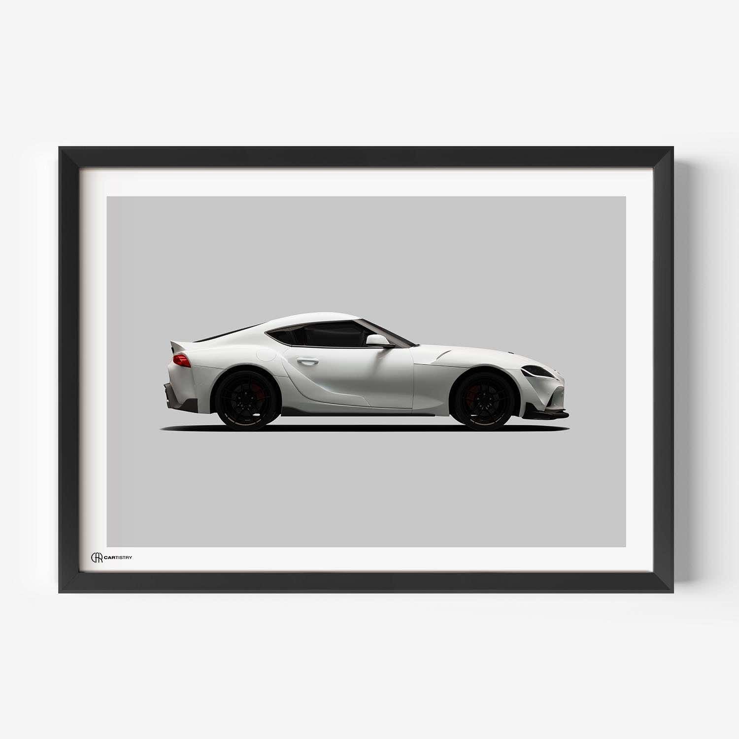 CARTISTRY Premium Poster in verschiedenen Größen (70x50cm und 40x30cm). Hergestellt in Deutschland auf hochwertigem 250g Premium-Papier. Dieses Poster zeigt einen Toyota Supra MK5 in der Seitenansicht ...