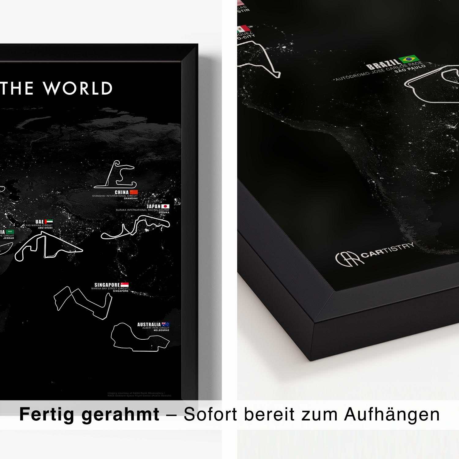 Legendäre Rennstrecken Weltkarten Poster - Dunkel